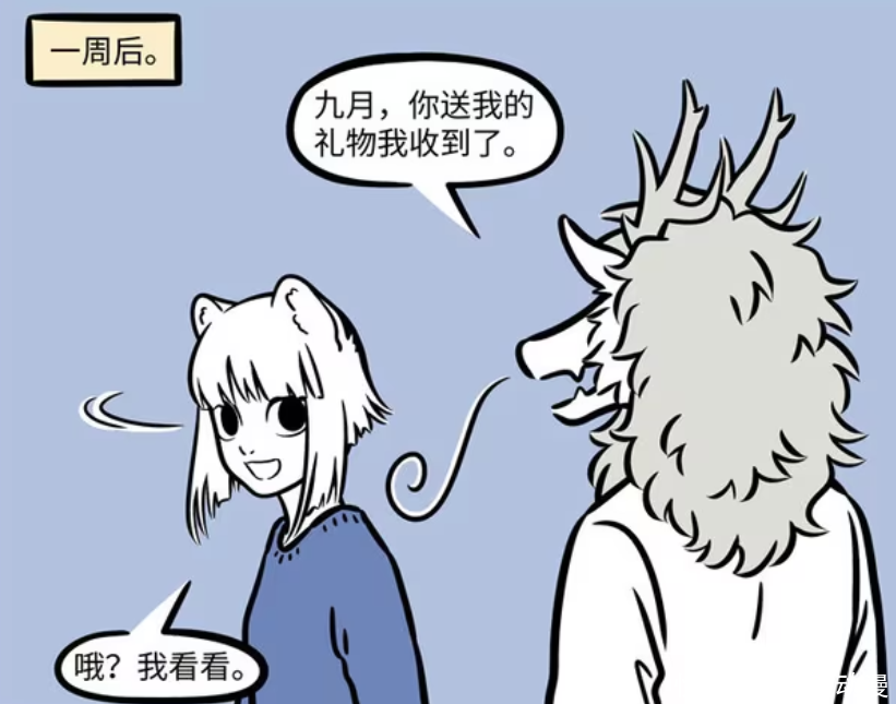 《非东谈主哉》漫画版中,九月和敖烈的关系可以说是最佳,好到让东谈主以为他们即是官配,应该在一齐。九月会给敖烈准备新年礼物,然而看到他在网上发的那些东西,基本都是豪车。九月示意送不起,只可送给洗车劵。不事后续九月还定制了套装领带,诚然出现了小插曲,但敖烈也示意很心爱。
