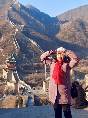 台湾后生康心苹在八达岭长城游览(康心苹供图)