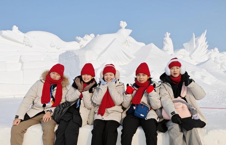 台湾后生在哈尔滨太阳岛雪博会合影(黑龙江省台联供图)