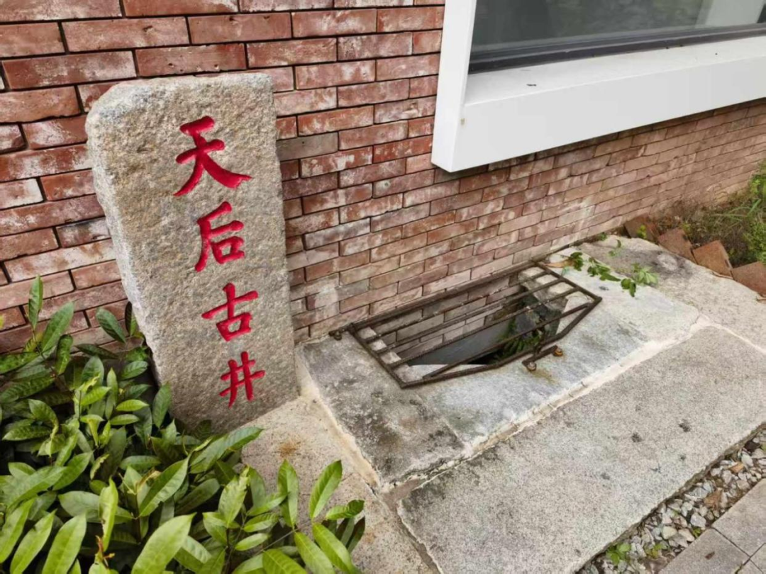 园区内留存的天后古井、“古庙旧址”碑石、树木