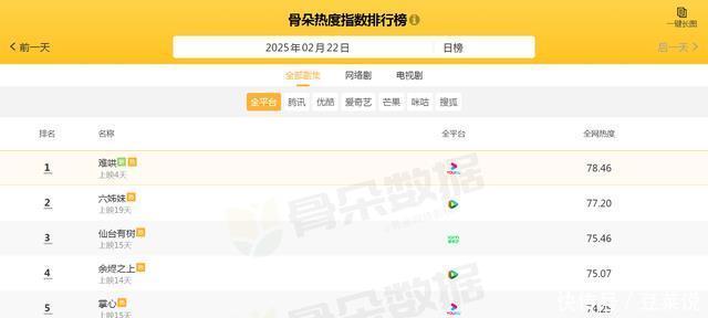 2、《六姊妹》 热度:77.20 主演:梅婷、陆毅 剧情点评:这真实是我看的最不悦的剧,满满的负能量。一家六个犬子,授室,出轨,离异,考大学,入狱的,作念交易,歇业的,光棍先孕的,父老偏心,最小的作妖的,病故的,车祸的六个姐妹没一家消停的,临了如故姐妹离心。固然临了细目强行大团圆。。结局的时候忠诚冷落拉个横幅,独生子女即是好,一个王人不成多!最让东说念主不悦的是这个剧极少年代感王人莫得,极少点王人莫得,就这个多破事,你告诉我是2024年发生的也信,阿谁年代配景的家具,啥王人没。真实是看得我快吐血了。是以总的来说没看的不雅众,就不要去踩雷了。