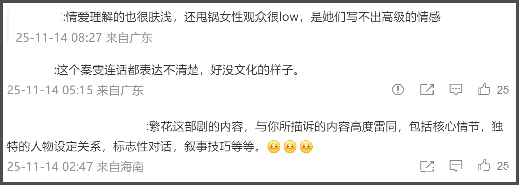 而《似锦》中的情感戏被吐槽也不是一天两天了,网友直言吐槽女性不雅众很low的编剧,也写不出打动不雅众的“高档”心绪。