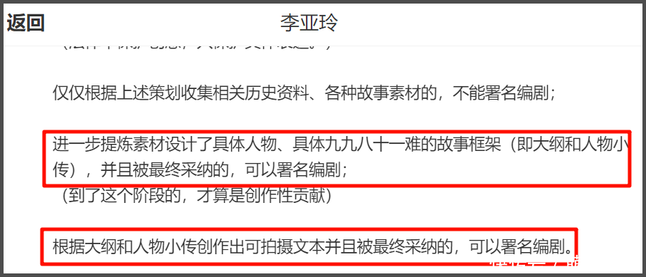此前业内编剧李亚玲让古二晒出脚本,阐明我方的编剧身份,随后又发长文,科普业内当今能签字编剧的条目,其中提到创作出大纲和东说念主物小传并最终被取舍的,不错签字编剧。
