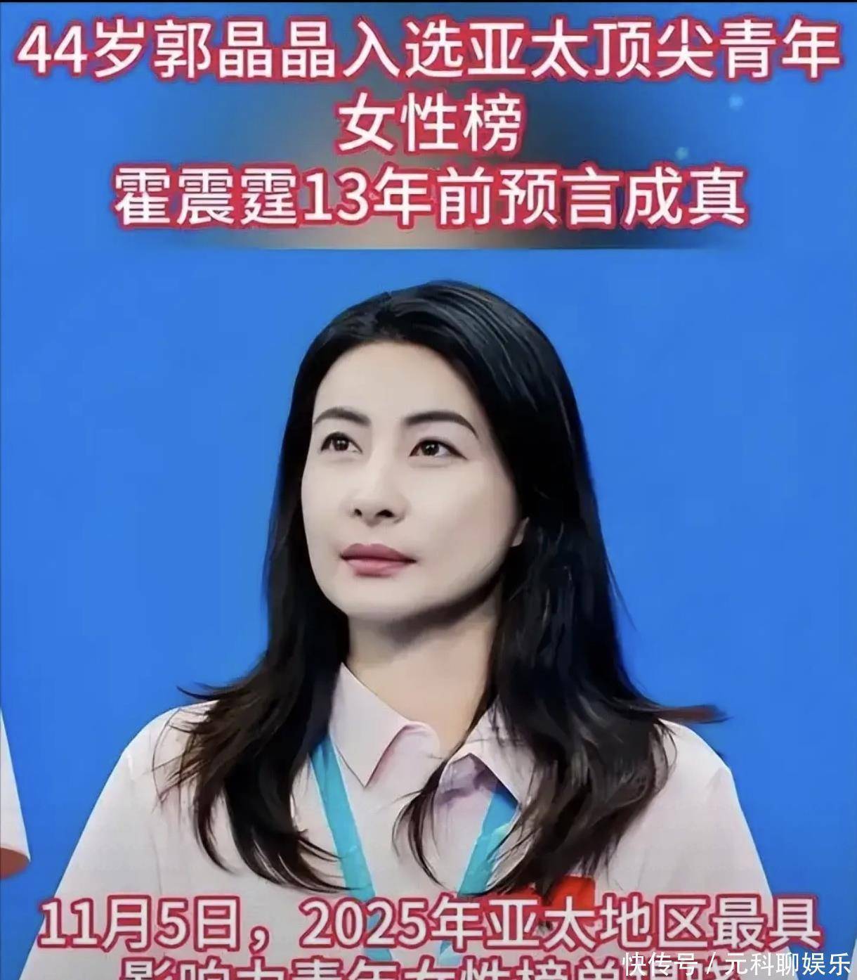 11月初,郭晶晶再添重磅荣誉:她与刘亦菲、迪丽热巴等优秀女性一同入选2025亚太地区最具影响力后生女性榜单。