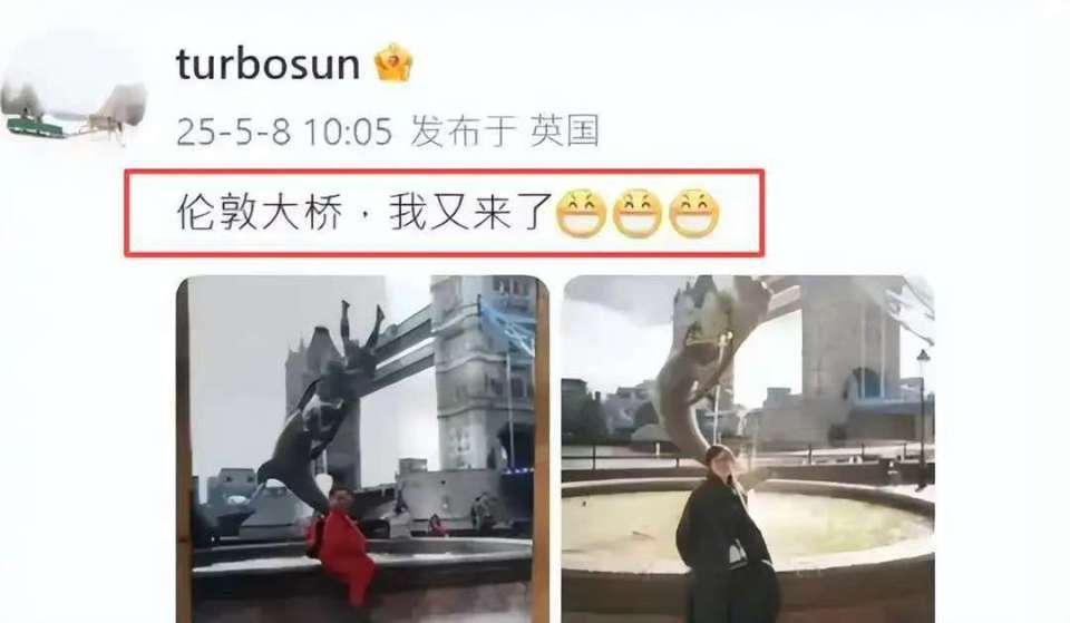 2025 年 5 月,孙俪带着女儿小花赶赴英国插足了一场青少年跳舞比赛。赛后,孙俪在酬酢平台共享了与伦敦大桥的合影,配文“伦敦大桥,我又来了”。