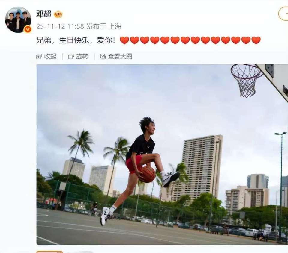 11 月初,邓超在微博晒出了与犬子等等在上海打篮球的合照,而且配文“昆季,诞辰爽脆,爱你!” 像片中,父子二东谈主在纯熟的上海街球场欢畅声束缚,动作还神同步。