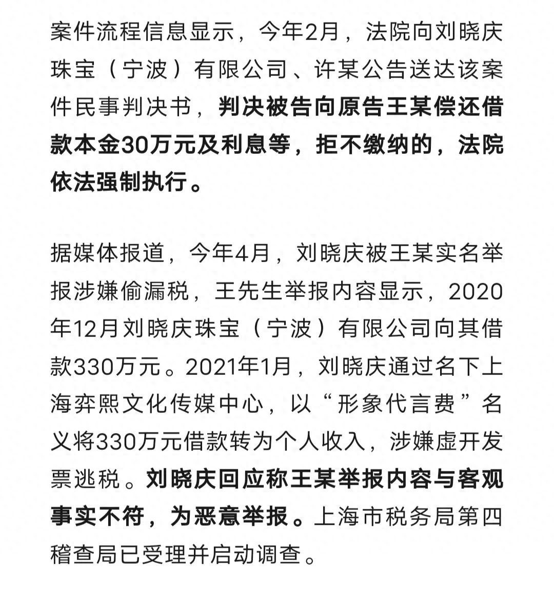 据天眼查:近日,刘晓庆珠宝(宁波)有限公司、许某新增一条被推论东谈主信息,推论见识44.9万余元,波及王某与刘晓庆珠宝(宁波)有限公司、许某联系民间假贷纠纷案件,推论法院为深圳市福田区东谈主民法院。