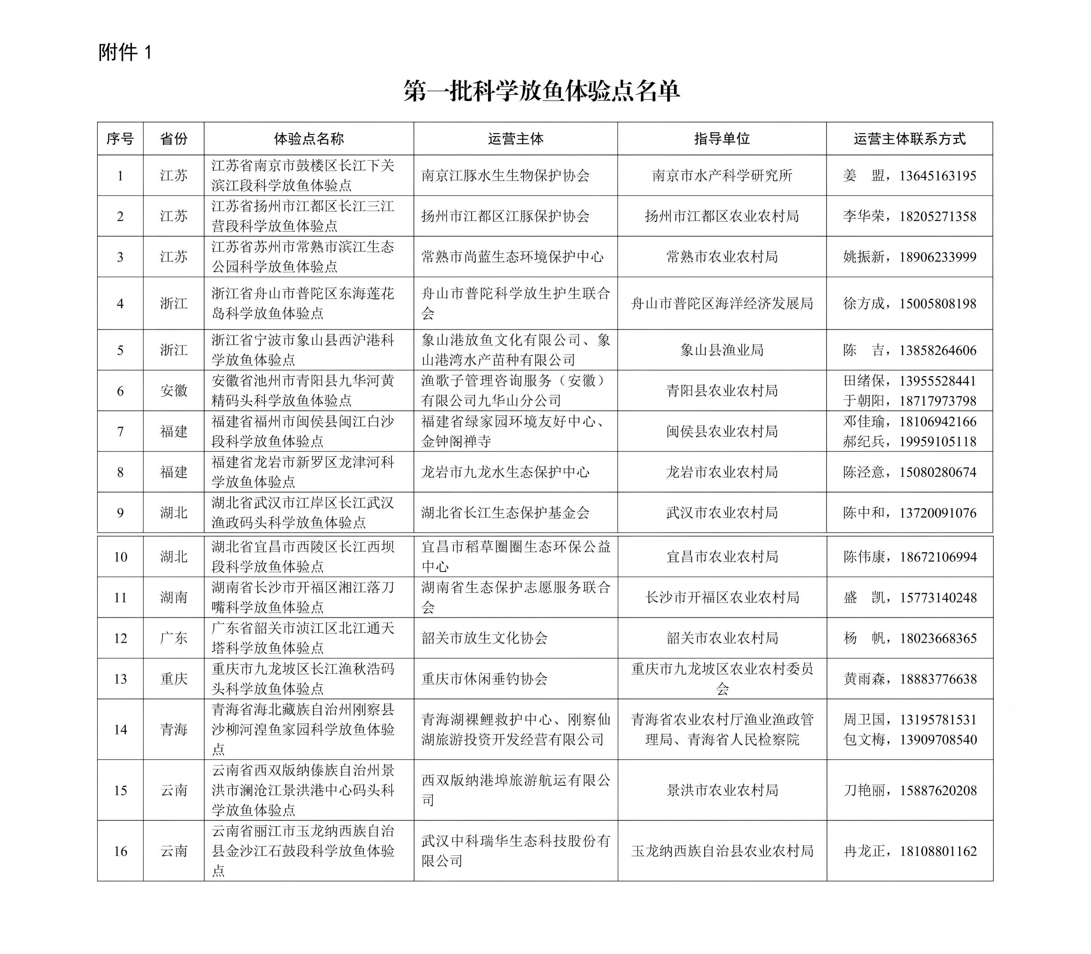 第一批科学放鱼体验点名单。 图片开始于宇宙水产技艺膨胀总站官网